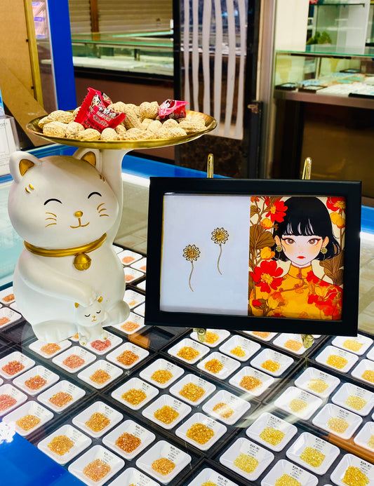 "Chuntian Twin Flower" series pink and yellow gemstone combination