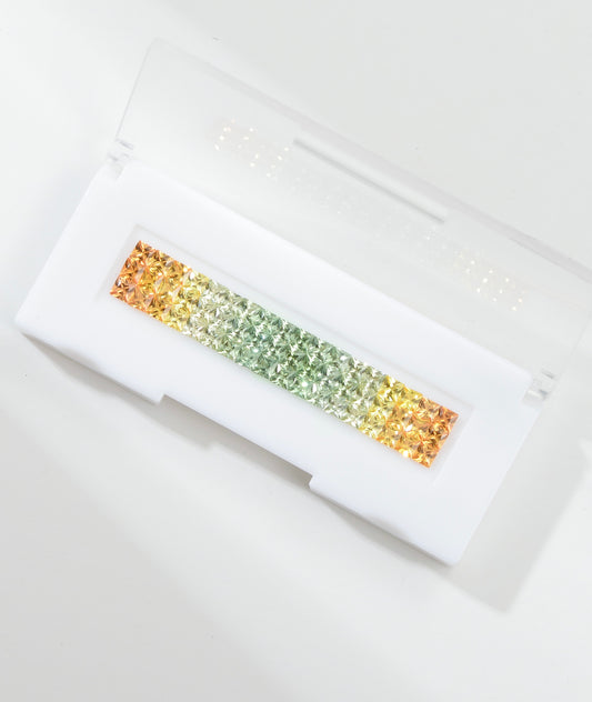 Gemstone box set with 4*2mm cat's eye shape yellow sapphire, ranging from grade 1 to grade 4, in the copper coin series.
