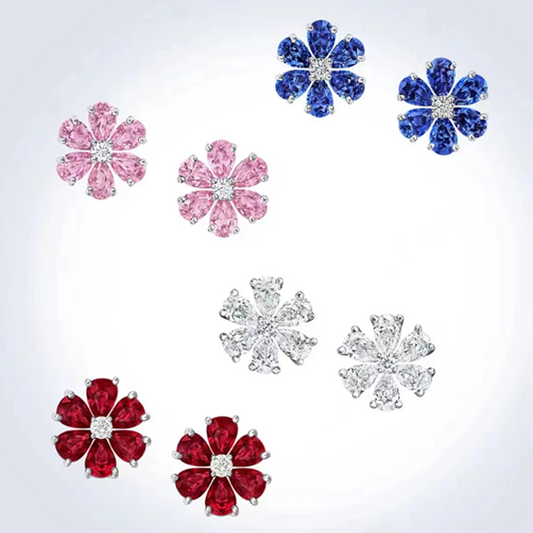 Gemstone set box with 3*4mm drop-shaped ruby clover earrings