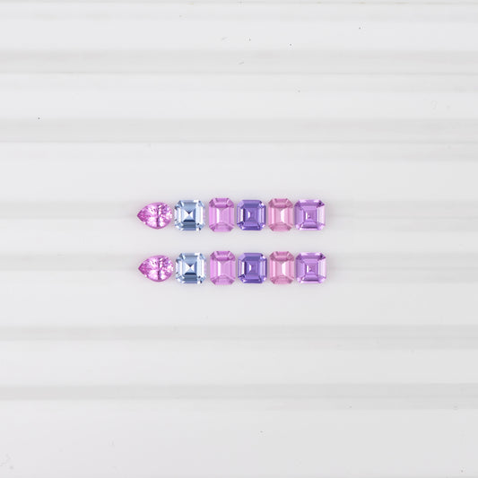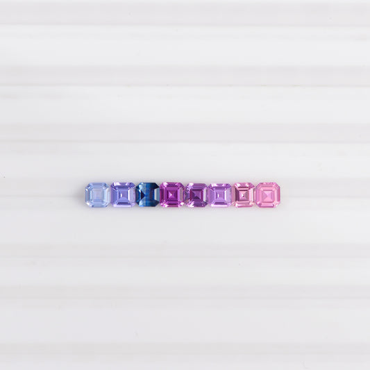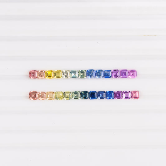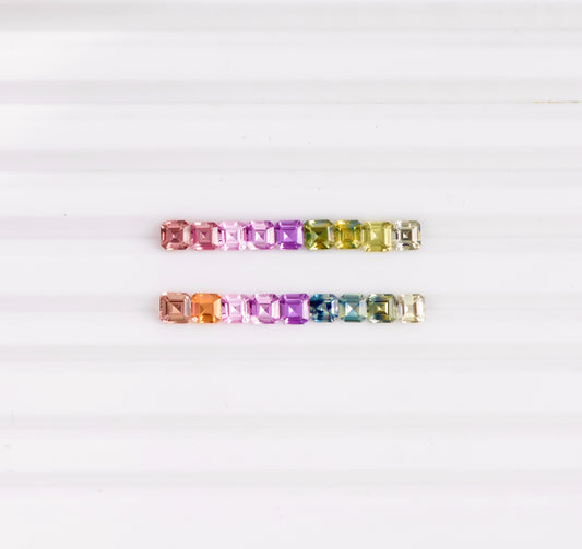 1.488ct Rainbow Candy Princess Cut Colored Sapphire Suite