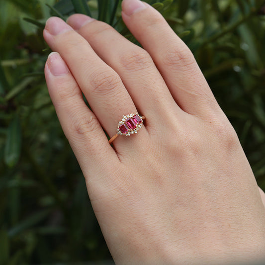 Ruby Cluster Engagement Ring | 18K Yellow Gold | Natural Gemstone