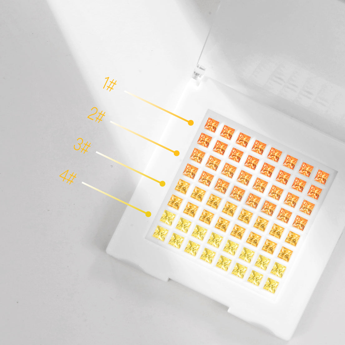 By analysing the big data based on thouands of colored gemstone samples, the color grade is according to the characteristics of the gemstones of different categories, the brightness and saturation of the gemstones, according to the characteristics from deep to shallow.The color grade is up to "1#", the grades are successively decremented, and the colors are lighter in turn.