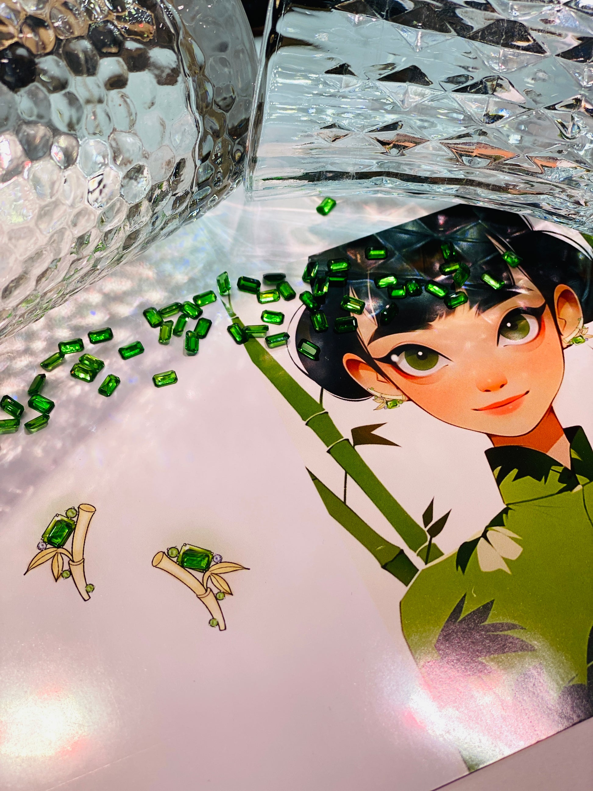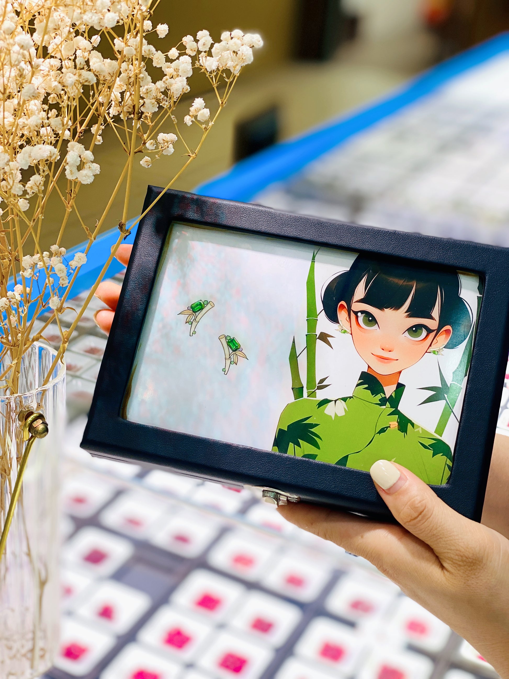 0.613ct Chrysoberyl "Bamboo Series" Matching Box, Bright Emerald Green Color, Full Fire Color Cut