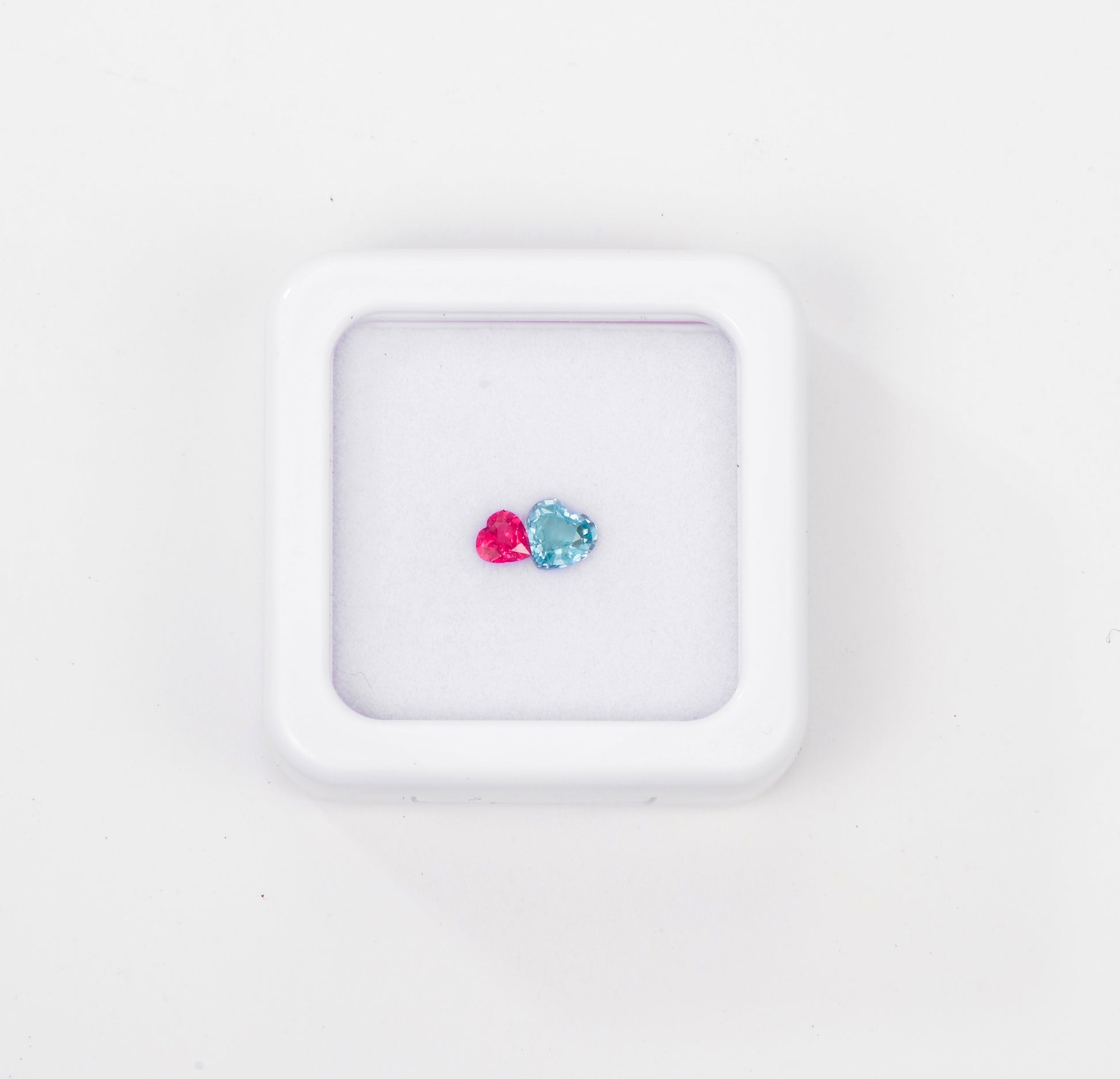 0.941ct Ruby and Paraiba Tourmaline Double Stone Ring with Heart-Shaped Gems