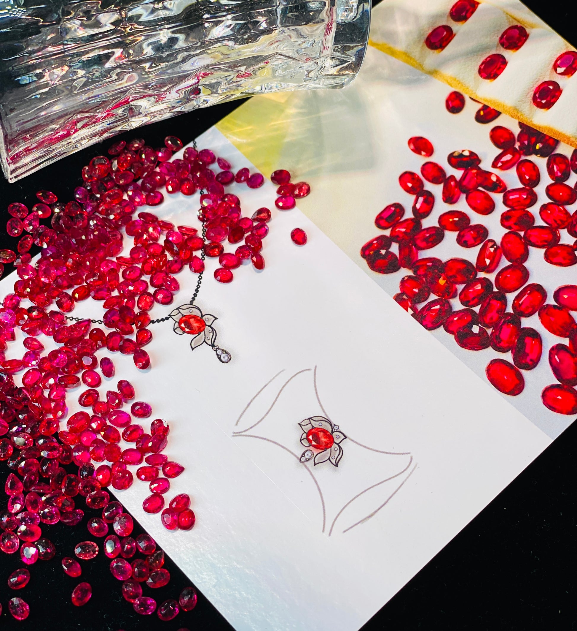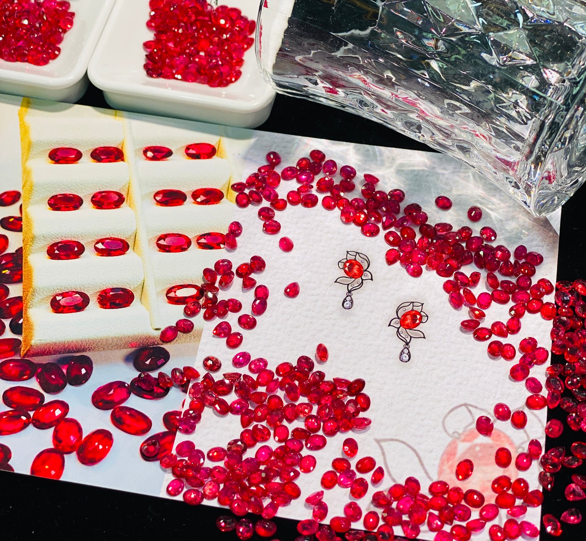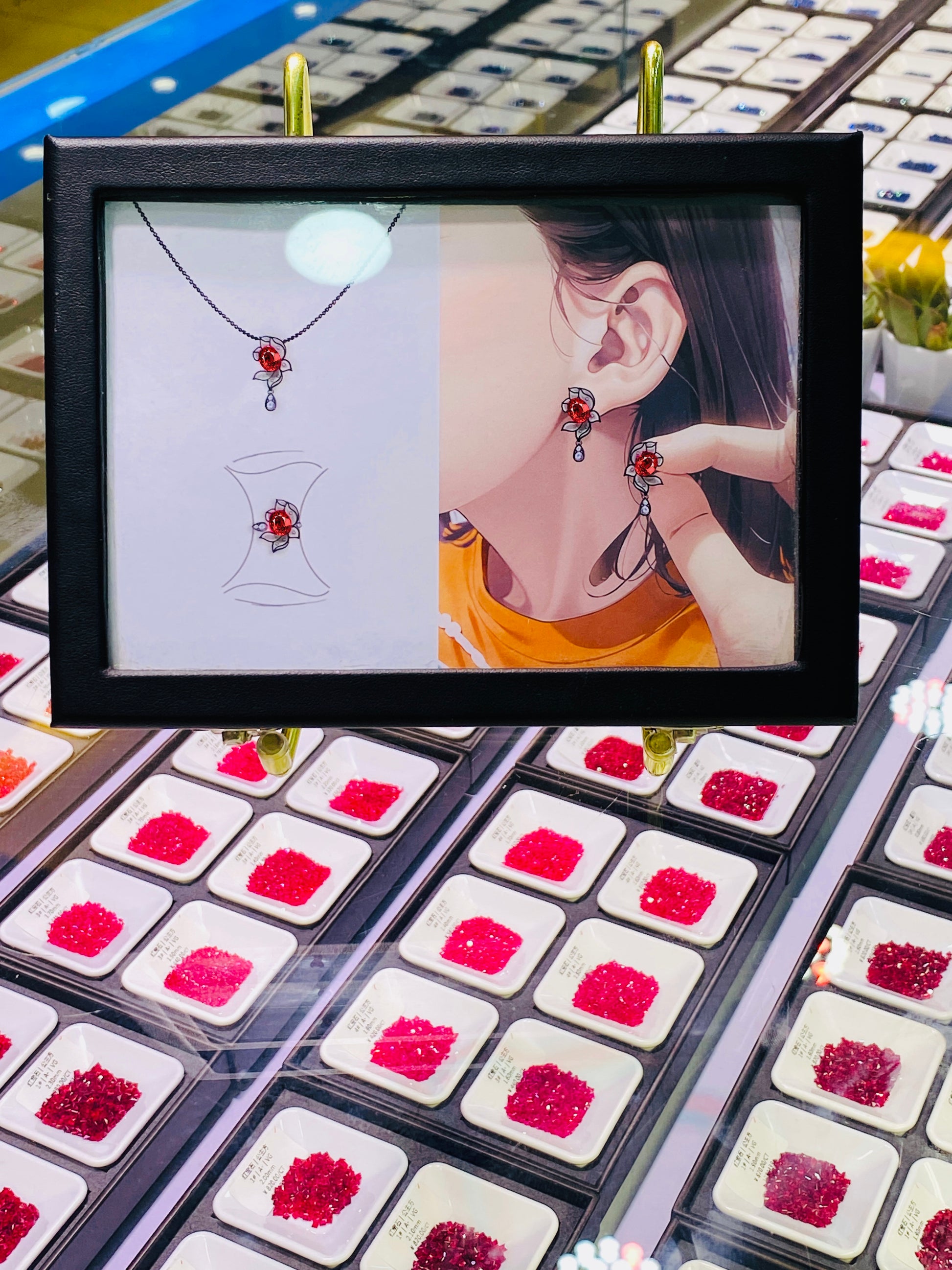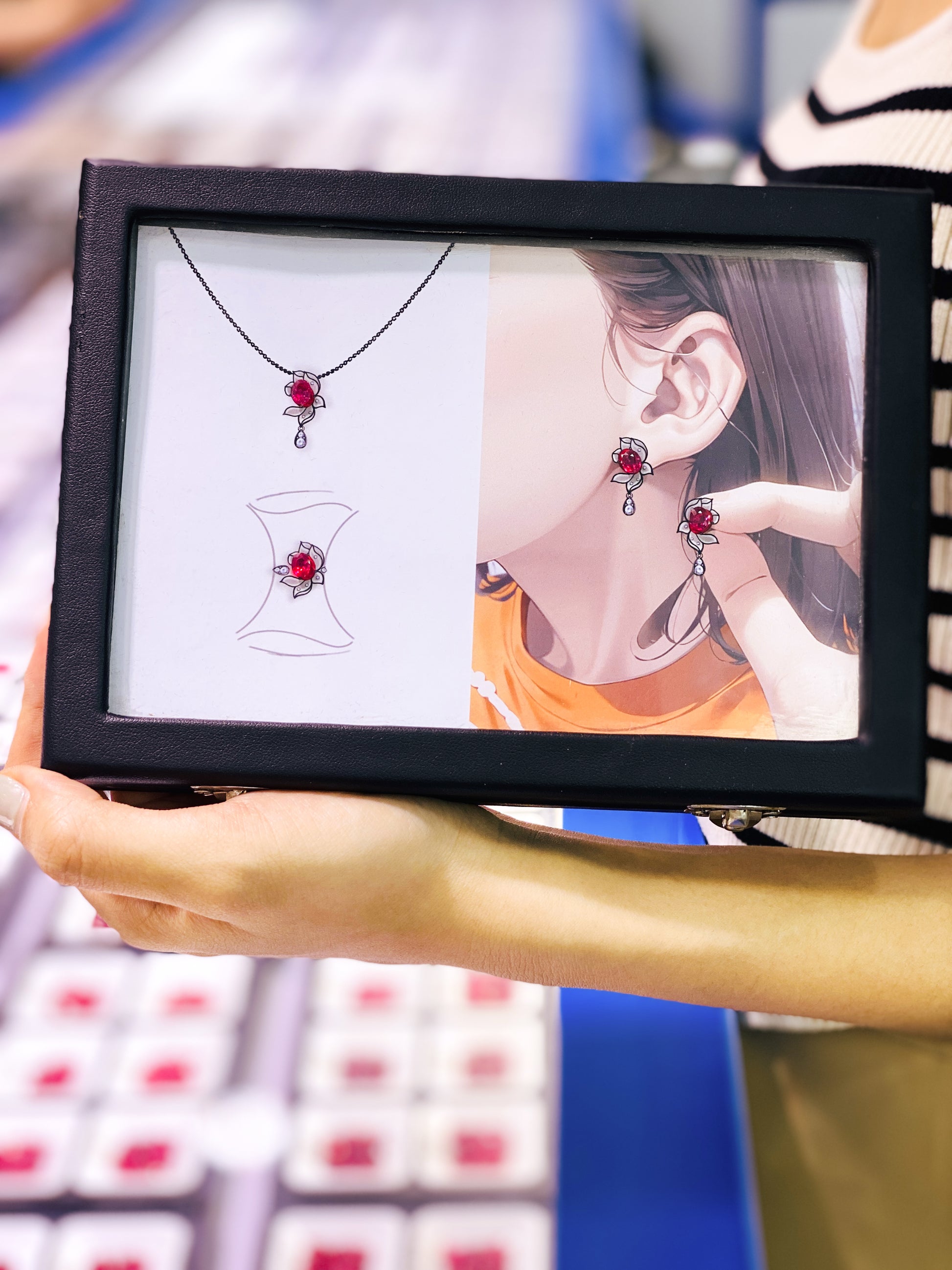 C1 matching box "Dancing Red Lotus Girl" set approximately 1.8ct