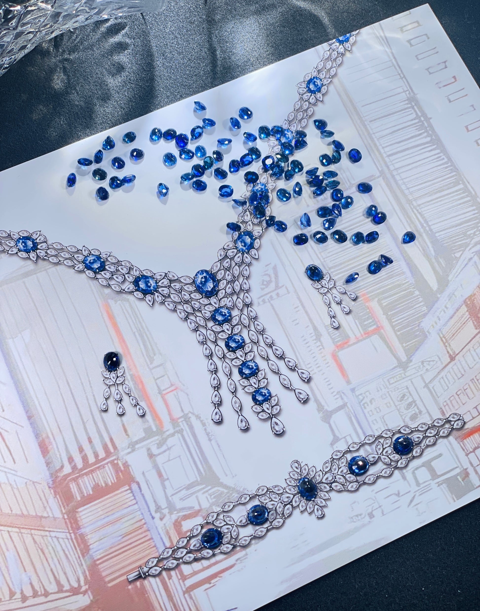 C17 Matching Box "Ocean Star" 18.176ct Royal Blue Sapphire Necklace Bracelet Earring Set