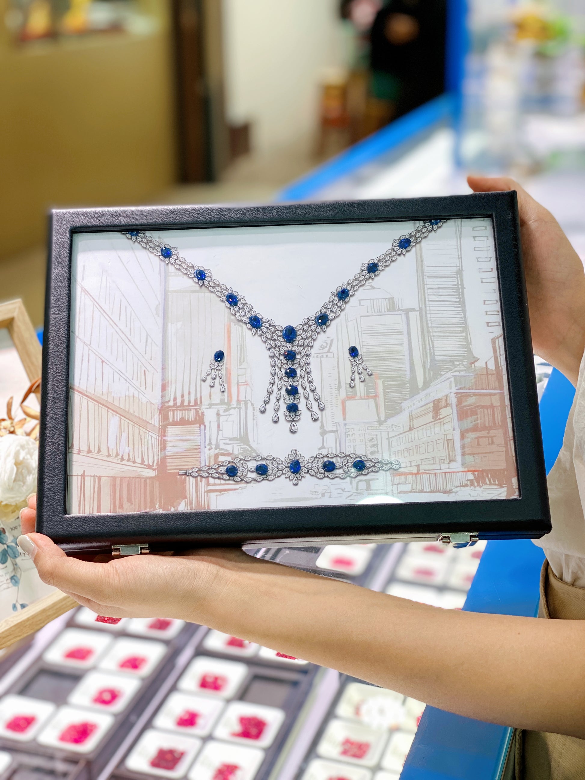 C17 Matching Box "Ocean Star" 18.176ct Royal Blue Sapphire Necklace Bracelet Earrings Three-piece Set Luxurious and Elegant
