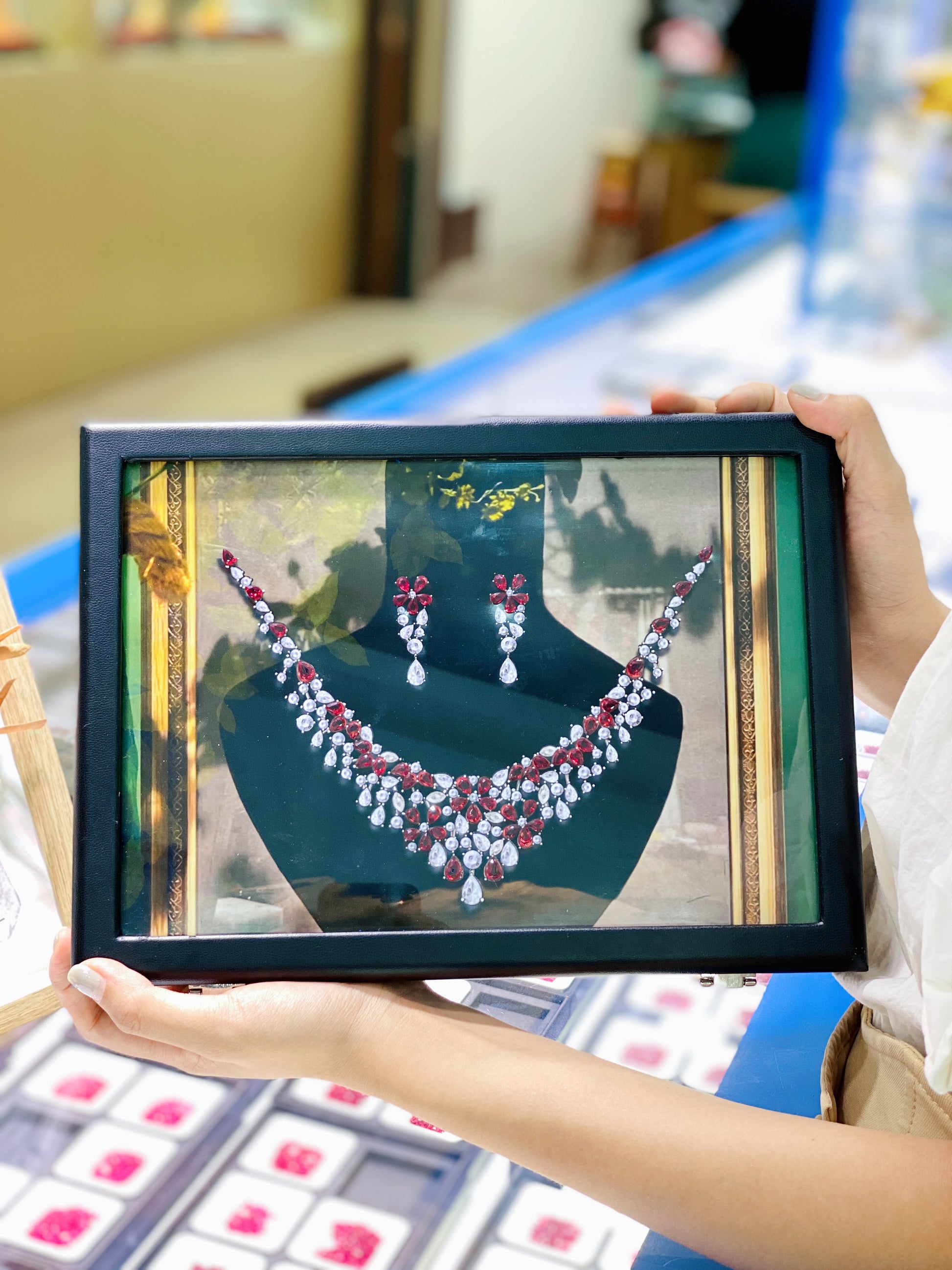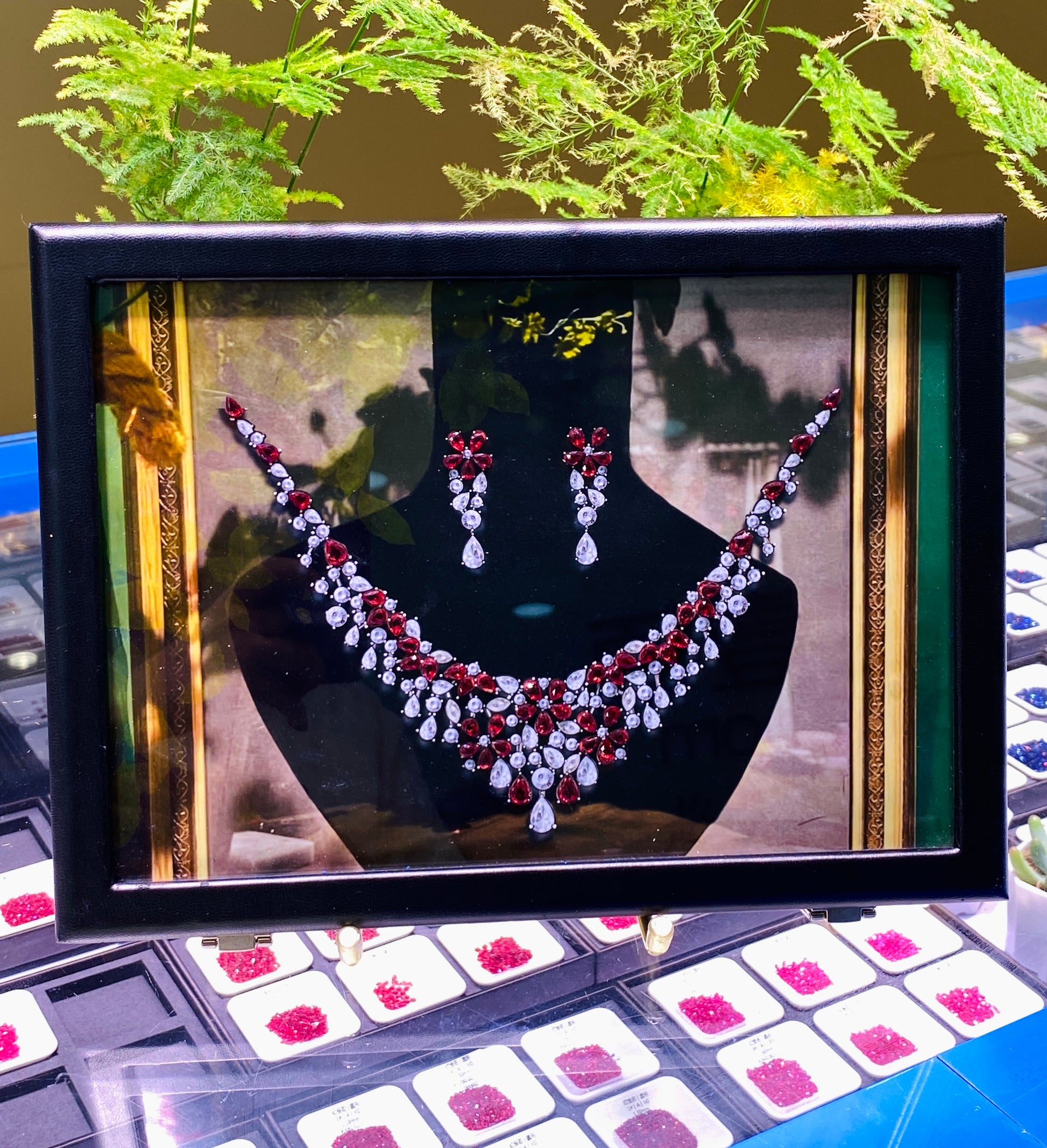 C26 Matching Box "Luxurious Night Banquet" 24.583ct Pear-shaped Ruby Necklace Earring Set