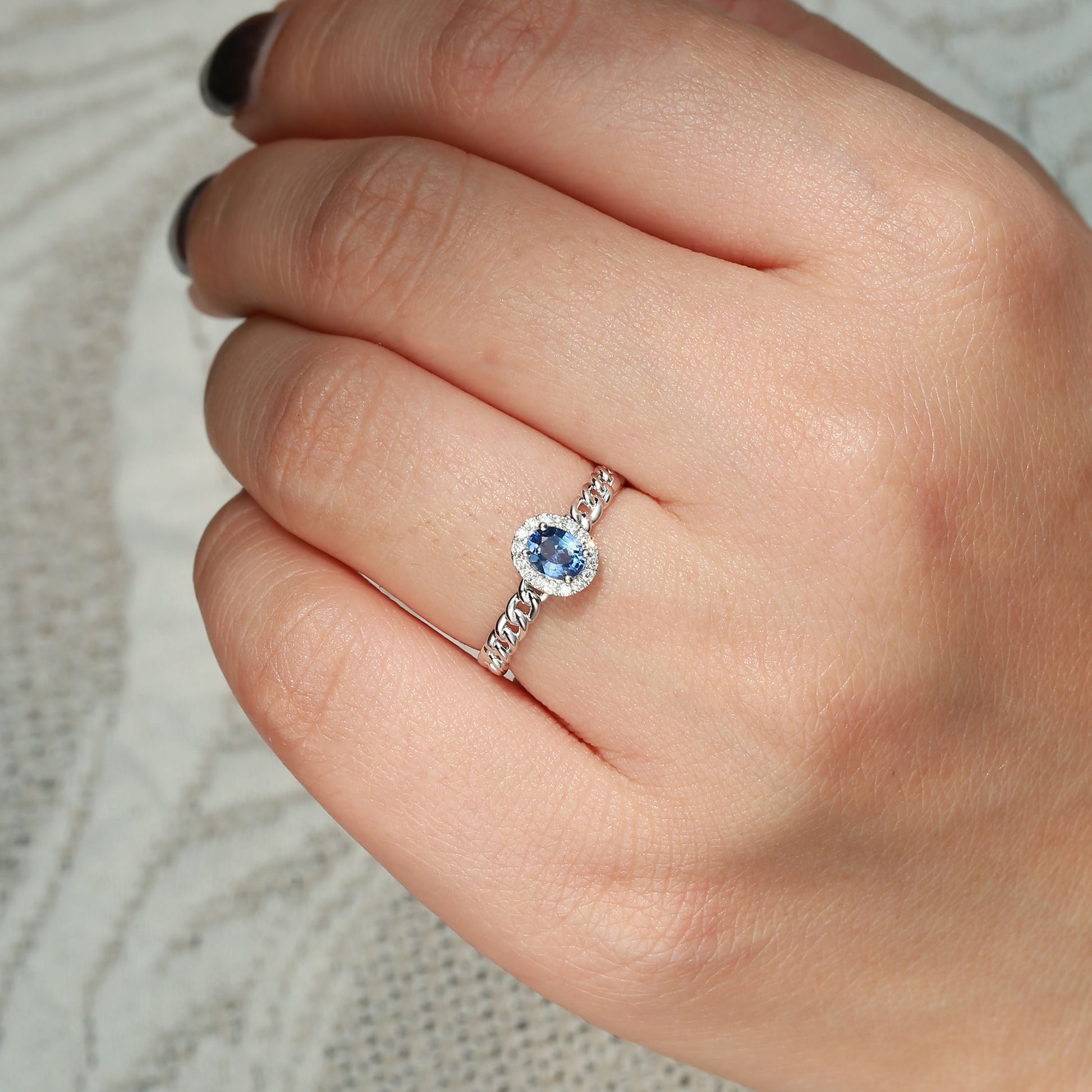 Celestial Egg Sapphire Ring | 18K white gold | Natural Gemstone