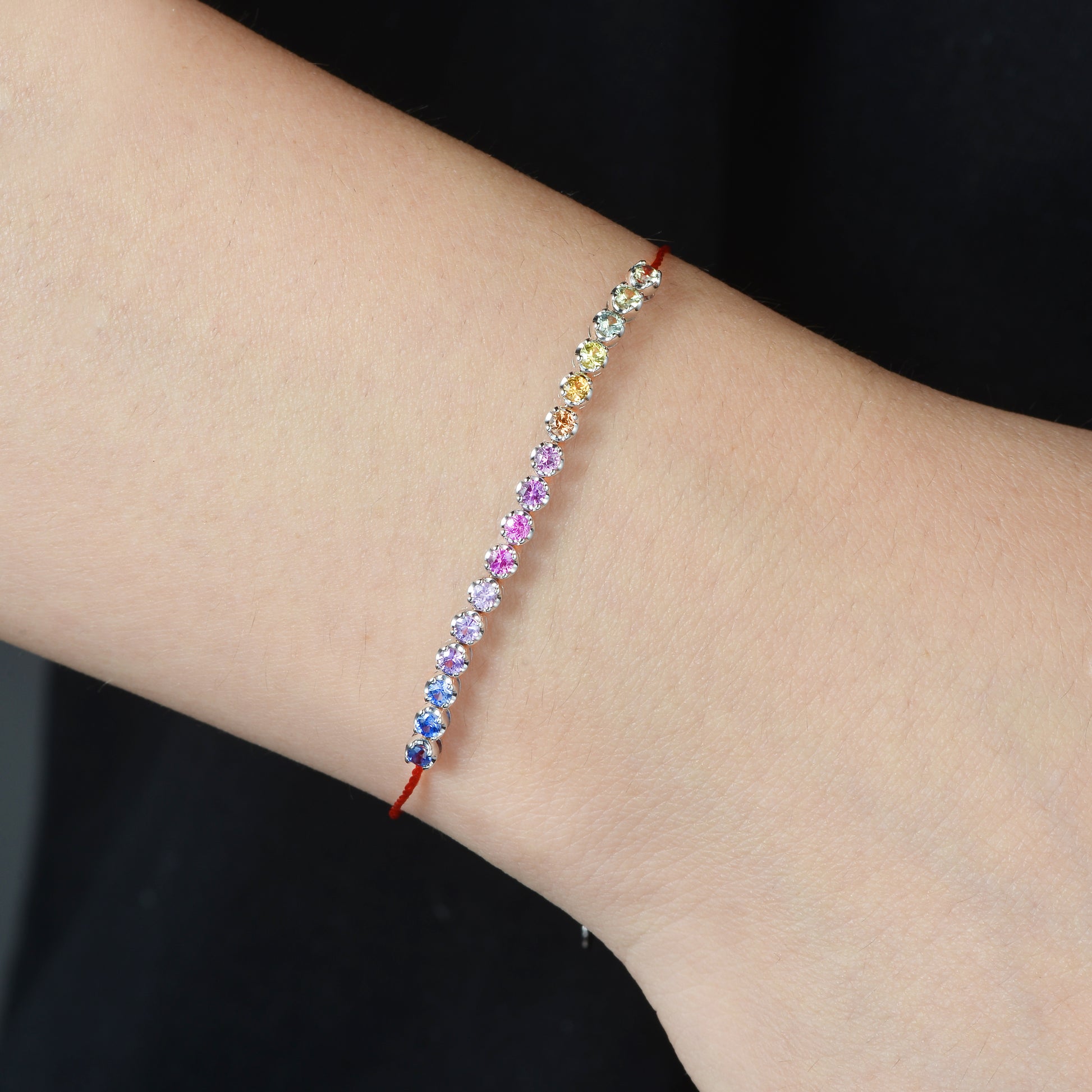 Crimson Thread & Gradient Sapphire Bracelet | 18K Gold | Natural Gemstone