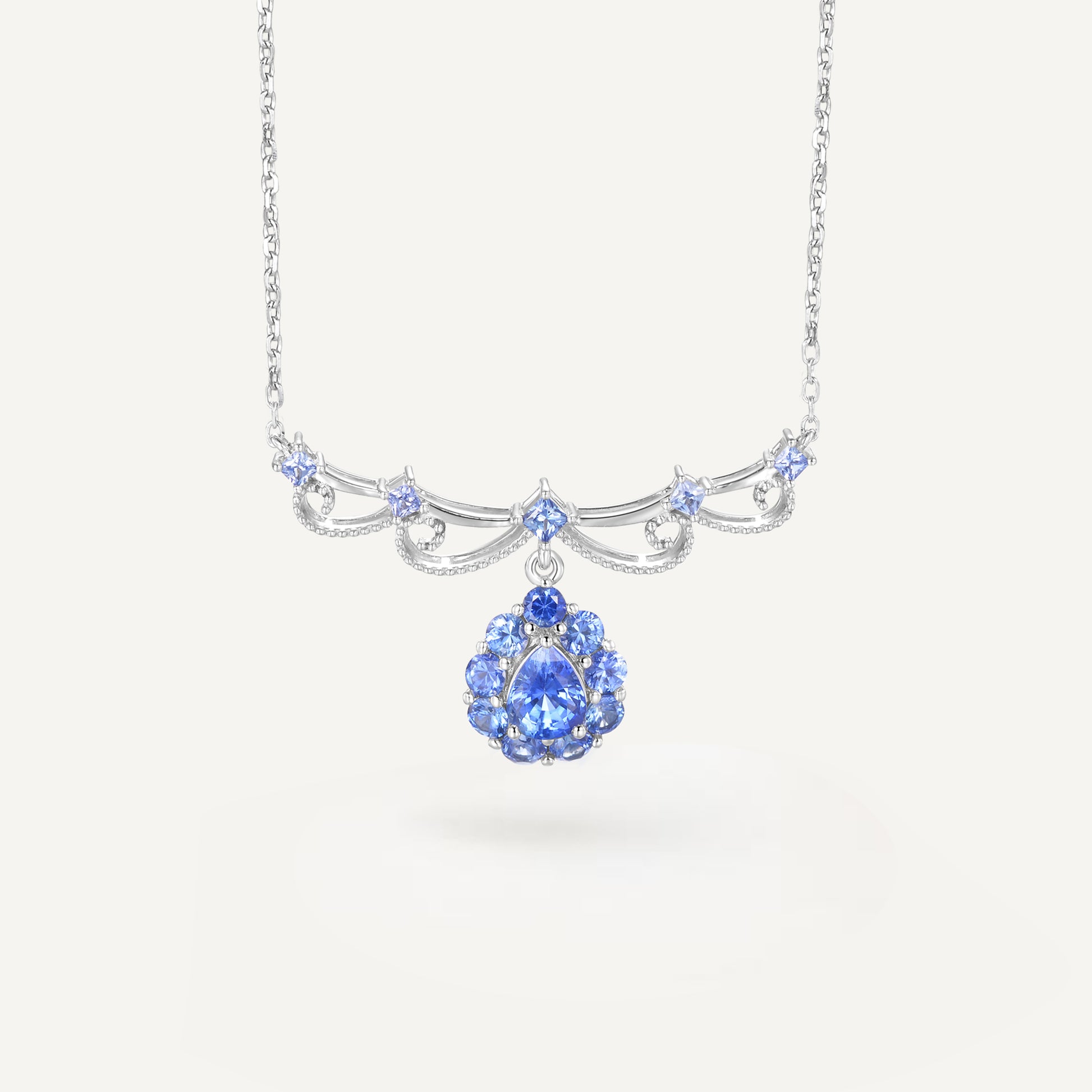Crowned Sapphire Azure Necklace| PT 950 | Natural Gemstone