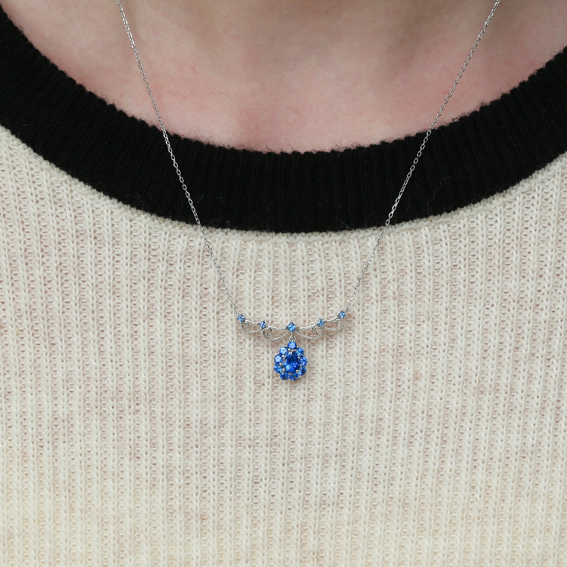 Nceklace in PT950 platinum with main stone pear-cut sapphire 0.423ct ,accent stone round/princess cut sapphires totalling 0.626ct ,Total weight: 4.16g base on adjustable Full-Length Chain (45cm).