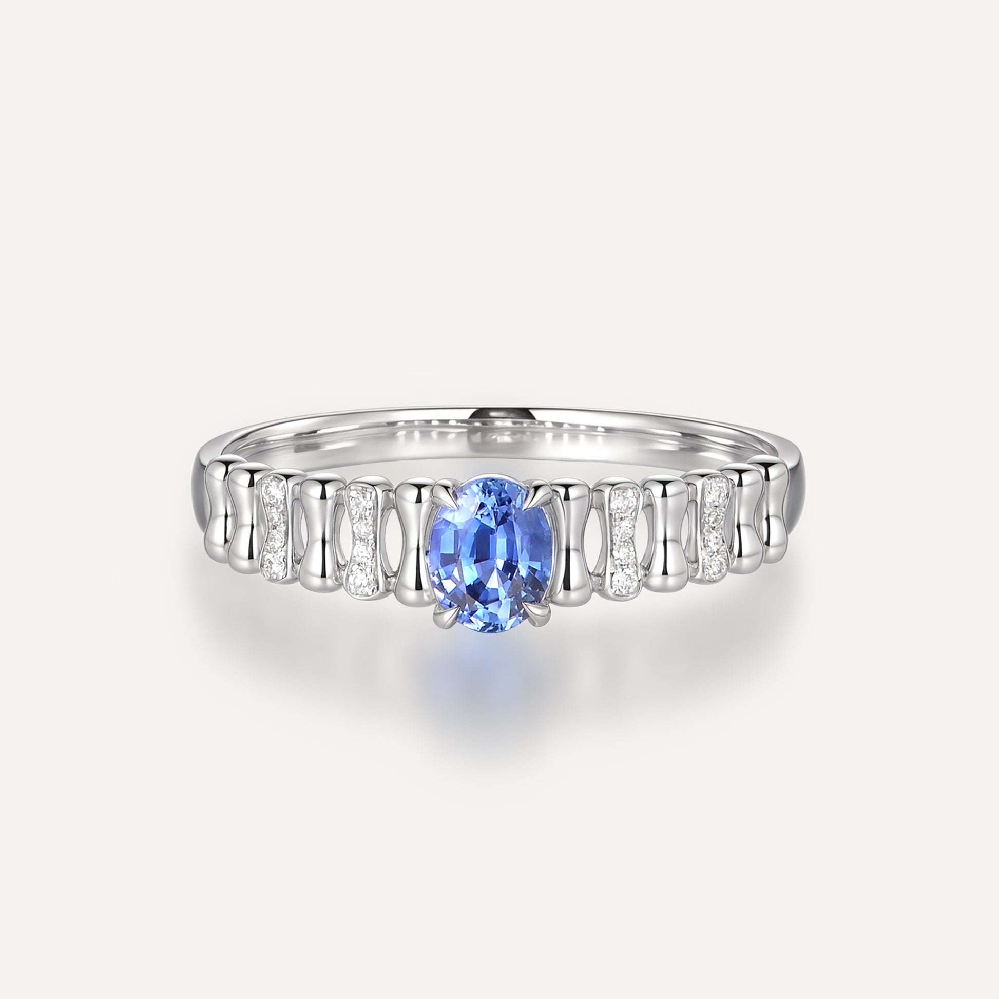 Inscribed Hearts Sapphire Ring | 18K white gold | Natural Gemstone