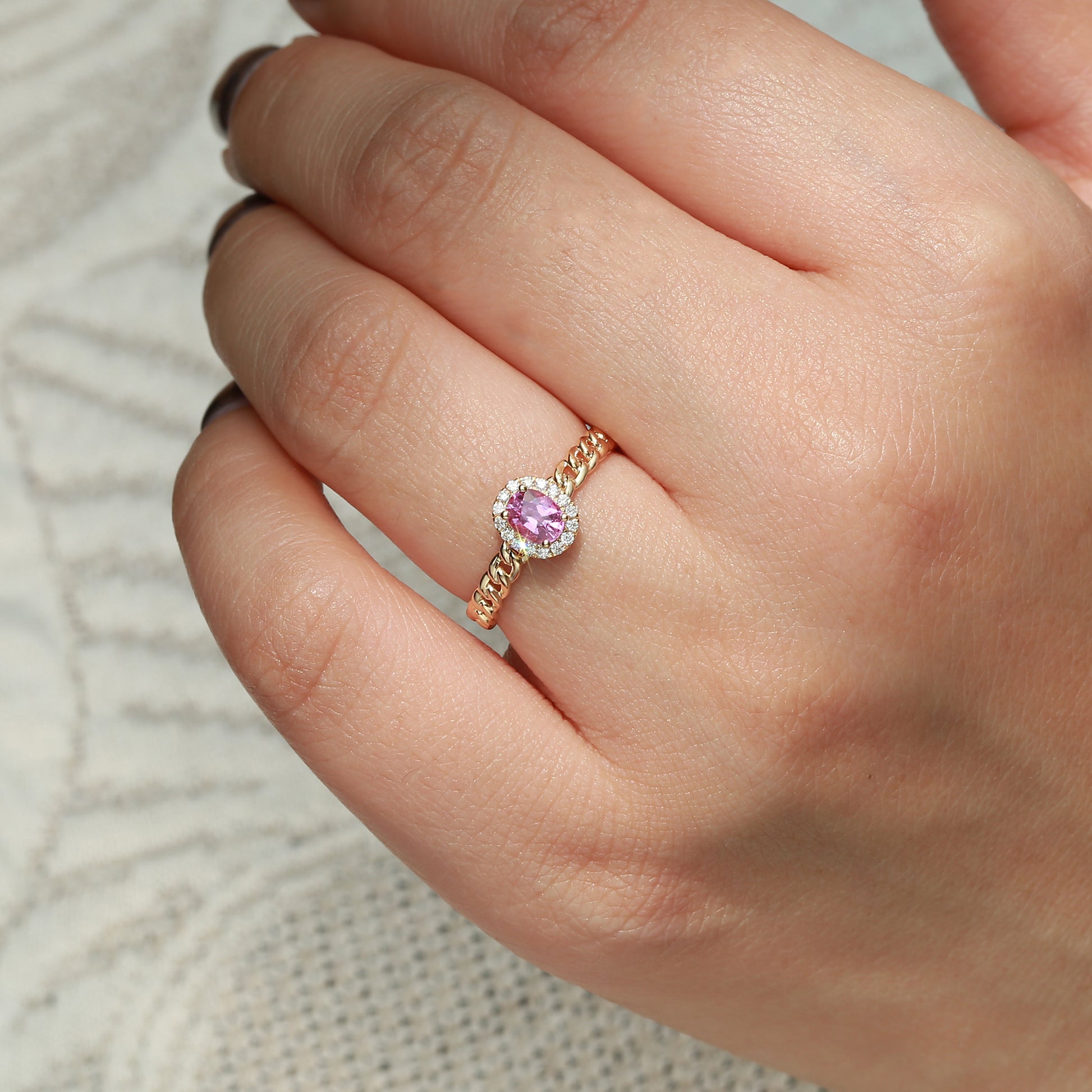 Misty Orb Pink Sapphire Ring | 18K yellow gold | Natural Gemstone