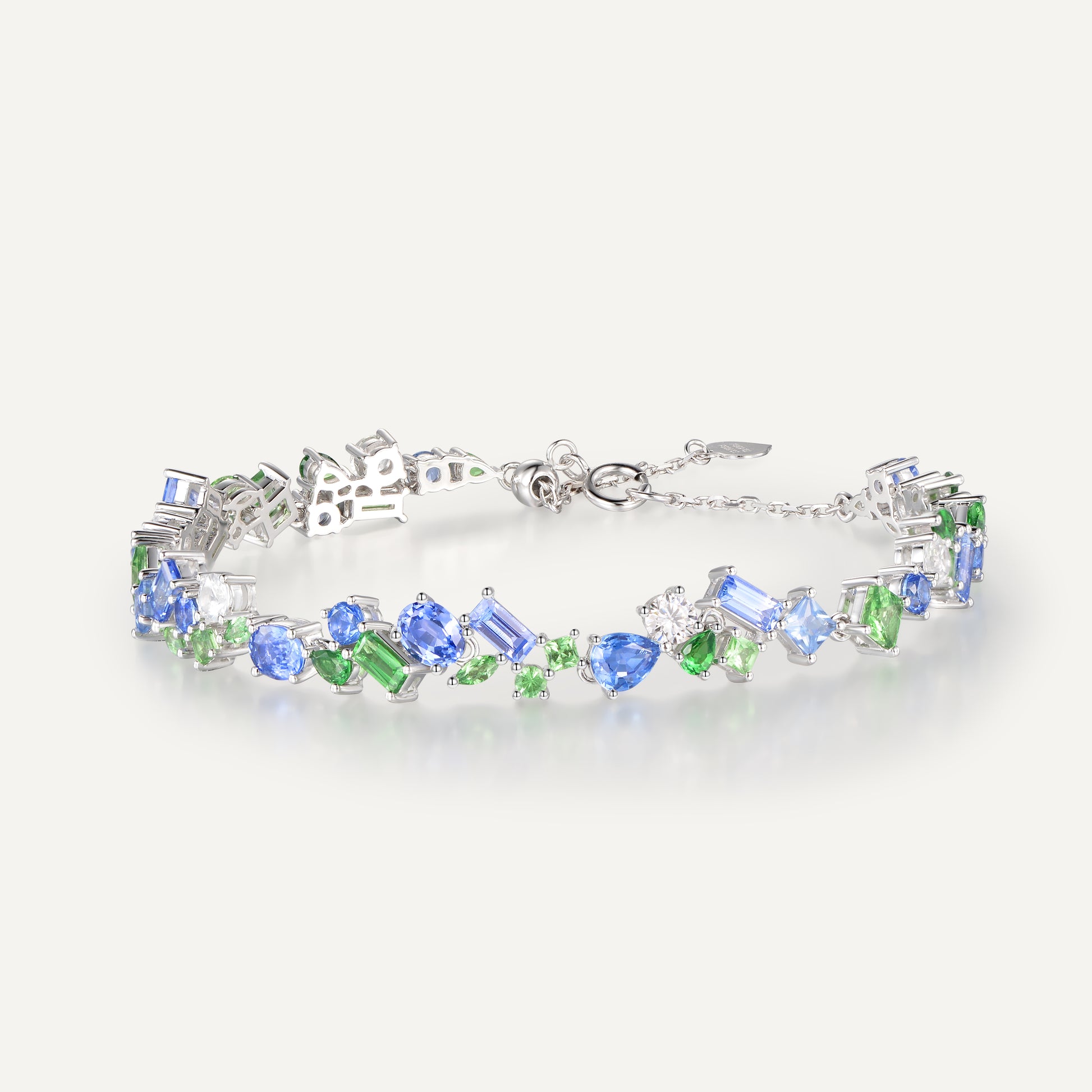 Bracelet in 18K white gold with sapphires and tsavorites totalling 5.33ct ,Total weight: 7.25g base on Lengths 17 cm. |Adjustable Chain - Slim Version|