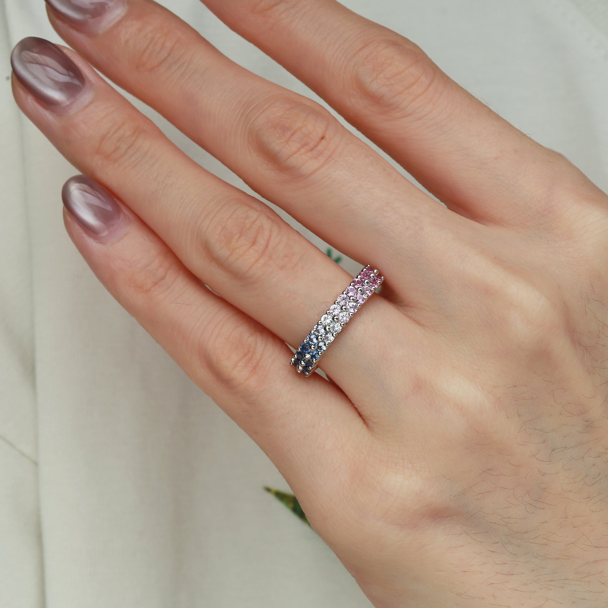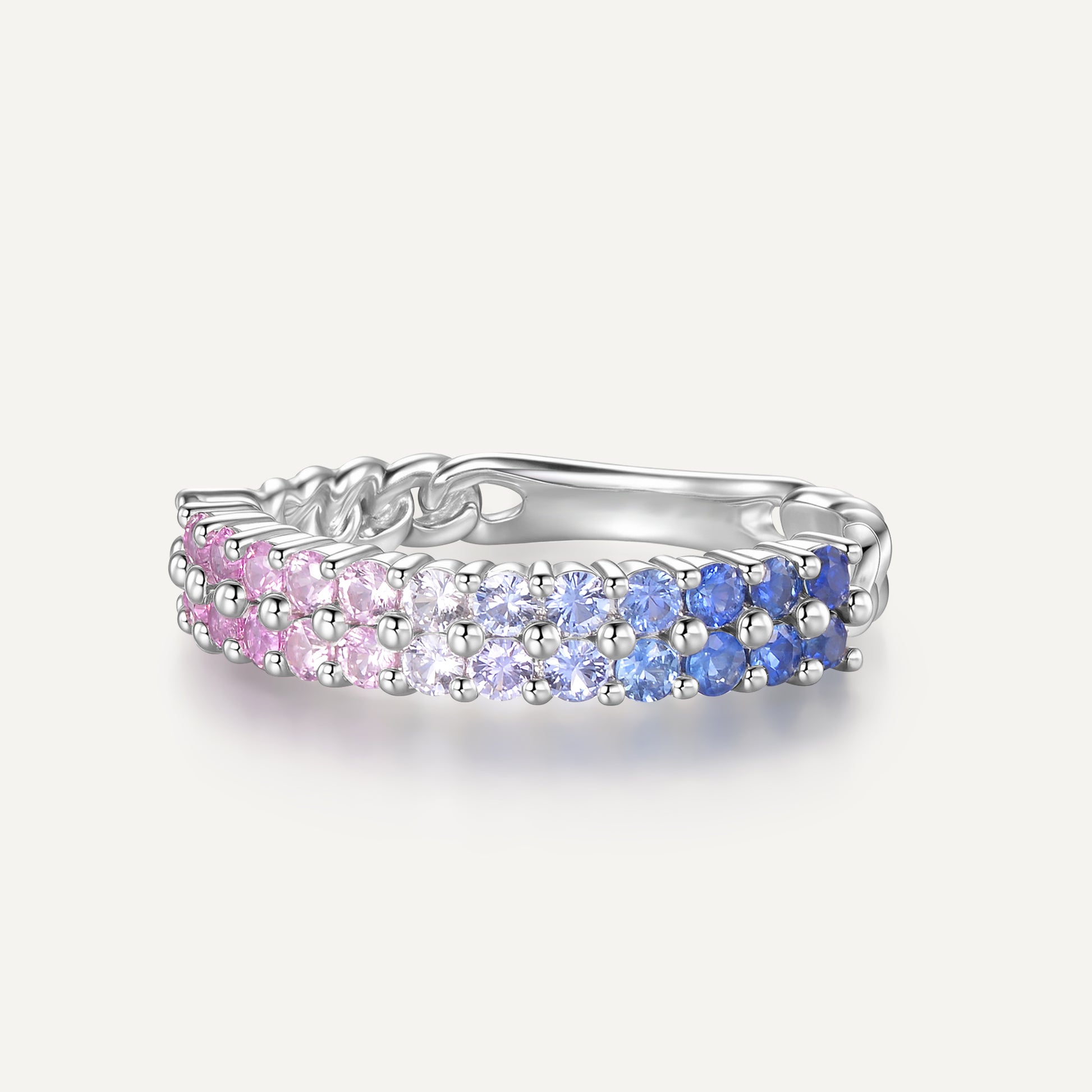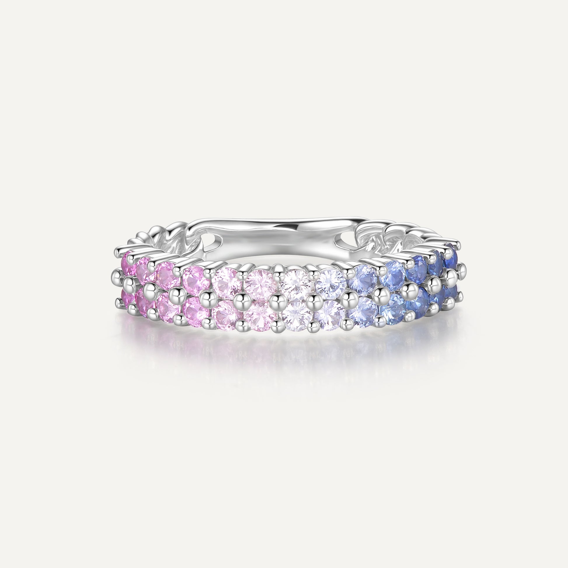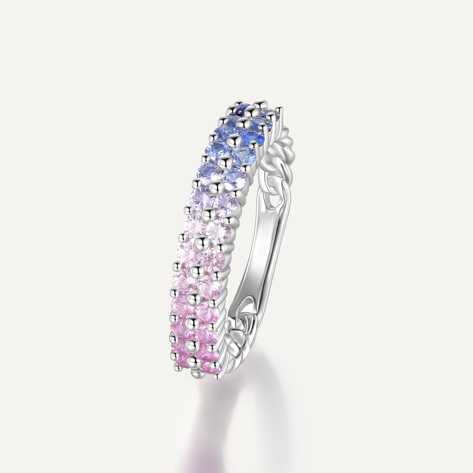 šInspired by Monetās water lilies, this dual - row ring features soft gradient gemstones transitioning from blush - pink to sapphire - blue in aĀ PT950 platinum setting. Its minimalist elegance mirrors the ethereal interplay of light and color in Impressionist art.