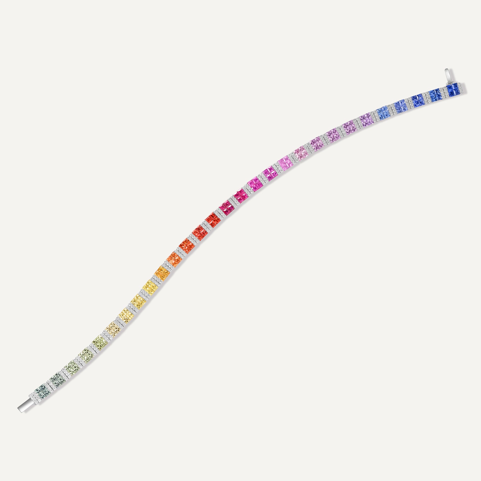 The design of Rainbow Eternal Bracelet is inspired by nature’s most fleeting yet captivating moment—the gradient rainbow that arcs across the sky after rain. We’ve frozen this ephemeral beauty into 18K white gold, using a double row of gradient sapphires to recreate the flow of a rainbow.