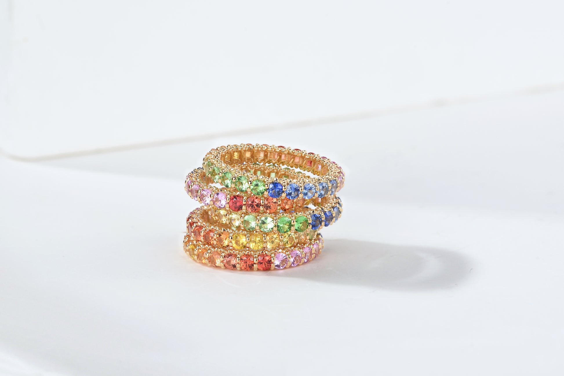 Rainbow Ring | Round-cut Version | 18K Yellow Gold | Natural Gemstone