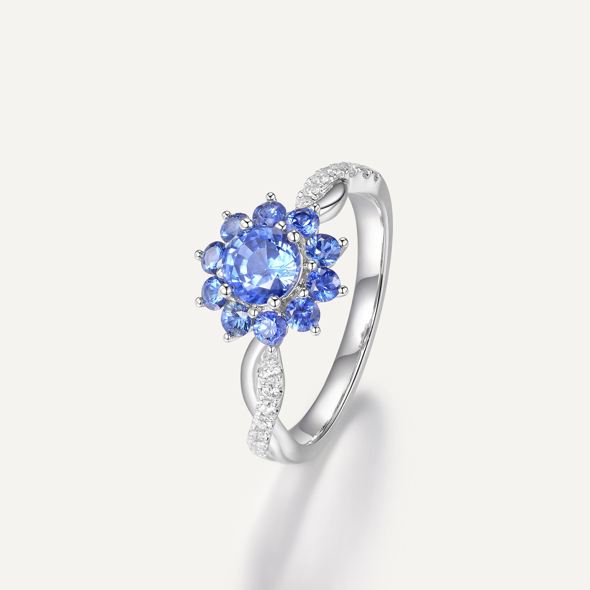 💍"The Royal Halo Ring showcases a majestic central sapphire encircled by a delicate arrangement of smaller sapphires and sparkling diamonds, embodying timeless elegance and regal charm."