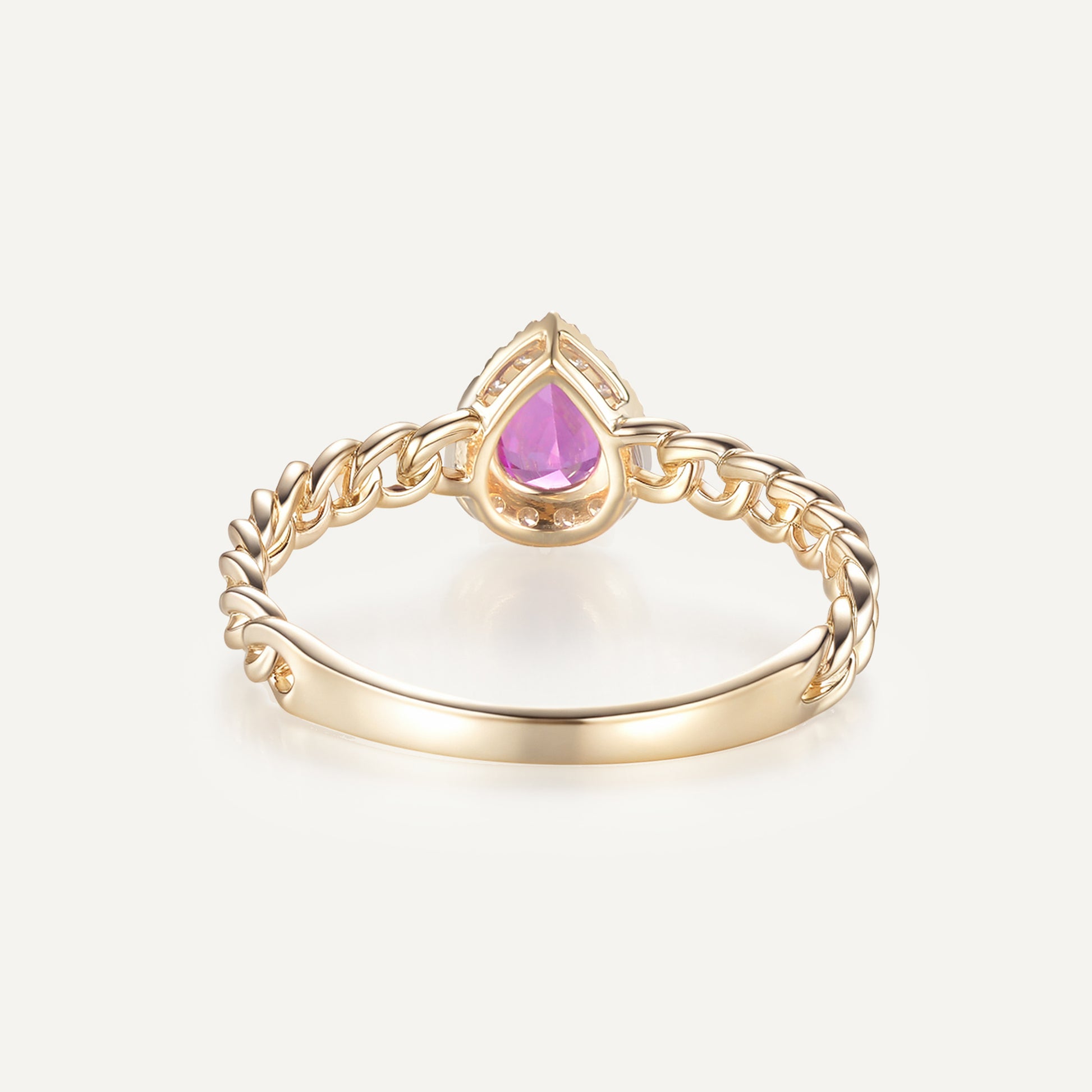 Ring in 18K gold with pear-cut center stone pink sapphire 0.406ct ,brilliant-cut diamonds totalling 0.08ct, Total weight: 1.91g base on 6.5-US.