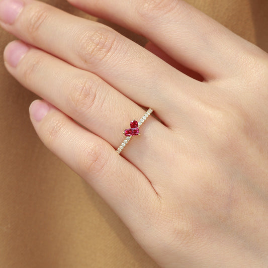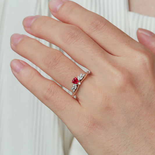 Ruby Heart Wings Ring | 18K Rose Gold | Natural Gemstone