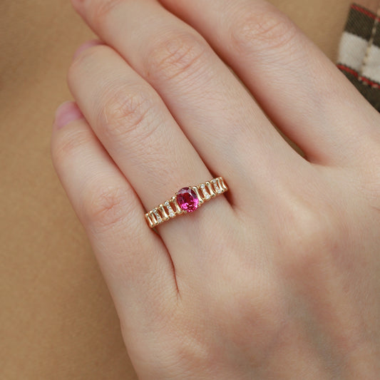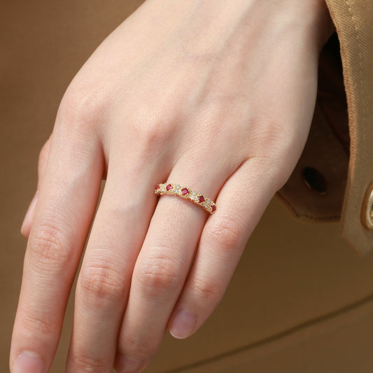 Royal Ruby & Diamond Row Ring | 18K yellow gold | Natural Gemstone